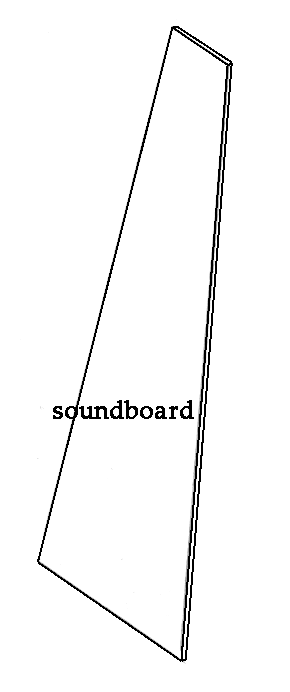 A quality spruce soundboard can be “tuned” before it is ever installed. This is accomplished by the “tap test”, a long tradition of listening to the sound of the board when tapping it with one’s knuckle. The low pitched tone emitted can be adjusted up or down by further thinning the board in various places, as a wooden xylophone key would be tuned.